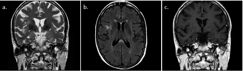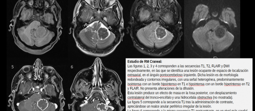 Hombre de 43 años que acude a urgencias por cuadro de 3 semanas de evolución de dificultad para la articulación del lenguaje, inestabilidad para la marcha y torpeza en los movimientos de la mano derecha. También describe episodios de sensación de giro de objetos que se se resuelven ad integrum. A la exploración física destaca nistagmo en todas las posiciones de la mirada, menor amplitud de movimiento y dismetría en extremidad superior derecha, palabra escandida y lateralización de la marcha hacia la derecha.